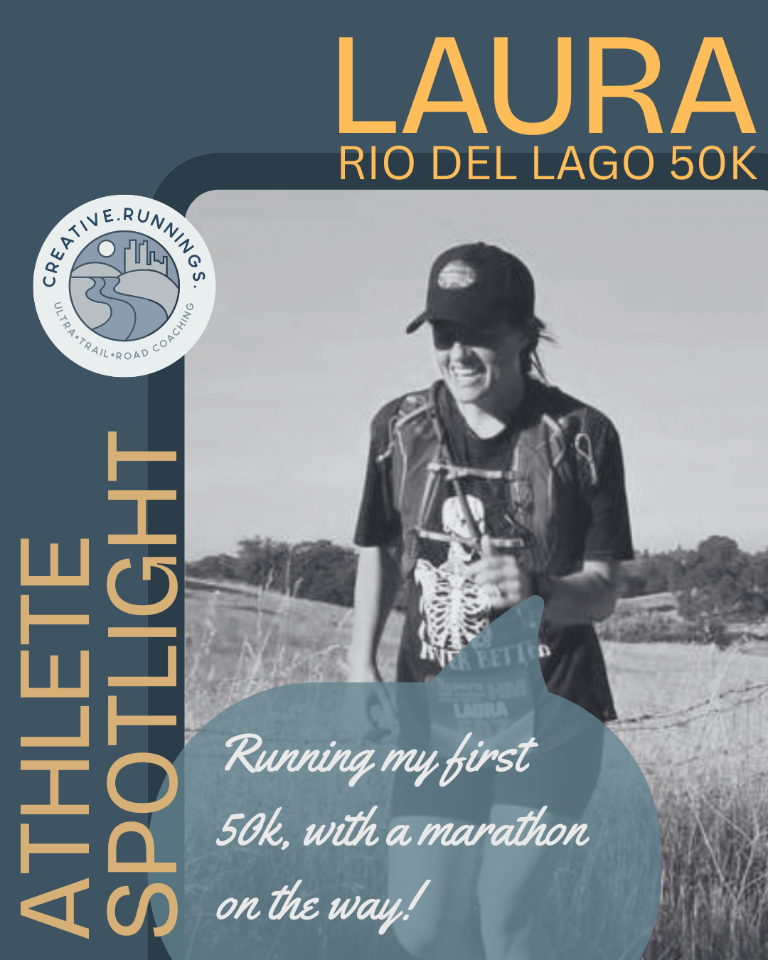 Laura is a super strong runner from Auburn and looking to run her first 50k at @norcalultras Rio del Lago! On the way, she's planning to do the Lake Tahoe Marathon. What a great lineup!